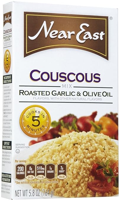 Couscous (precooked semolina), autolyzed yeast extract, olive oil, salt, natural flavor, garlic, onions*, soy protein, parsley*, spices, tocopherols for freshness, soy sauce (soybeans, wheat, salt). Can i use a rice cooker or steamer for couscous or rice pilaf? A quick and creative alternative to pasta. Cholesterol free.sodium free.saturated fat free.1 minutes preparation time.no preservatives.no food coloring.all natural ingredients.kosher parve under the supervision of the rabbinate of sderot. Near east products are high quality and easy to prepare.